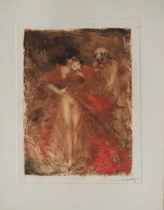 imprimé sans illustration pour laisser aux amateurs le soin de le faire décorer. Exemplaire unique illustré de 12 monotypes originaux en couleurs de Louis Icart, dont 4 planches signées et 8 in-texte monogrammés. Manque la préface et la justification.