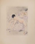ICART. NERCIAT (Andrea de). Félicia ou Mes fredaines. Paris, Georges Guillot, 1947. In-4, en feuilles, couv. rempliée, chemise et étui éditeur (chemise cassée, étui en partie fendu). 20 eaux-fortes en couleurs et 8 culs-de-lampe de Louis Icart....
