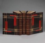 FOUQUERAY. POE (Edgar). Histoires extraordinaires. Paris, Cercle Grolier, 1934. 3 vol. in-folio, maroquin brun, dos à 2 nerfs saillants, auteur, titre et tomaison dorés, les plats mosaïqués de listels rouges dans un encadrement de nombreux filets...