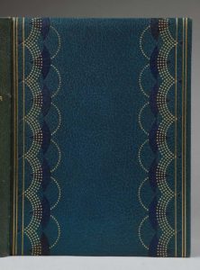 SAUVAGE. RÉGNIER (Henri de). Le bon Plaisir. Paris, Éditions de la Roseraie, 1929. In-4, maroquin bleu canard, dos lisse, auteur et titre dorés, les plats ornés et mosaïqués de palmettes et triangles en maroquin bleu nuit soulignés de...