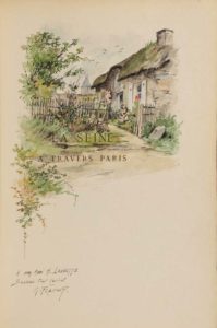 couv. illustrée et dos conservés [Bretault] (nerfs et coiffes frottés, qq. lég. griff aux plats, accroc en coupe de queue, 3 coins émoussés). 17 planches en couleurs et 230 vignettes en bistre ou bleu par Gustave Fraipont. Un des 10 exemplaires de grand luxe sur japon : celui-ci nominatif pour Henri Launette, l'éditeur. Avec : Aquarelle originale signée de Gustave Fraipont accompagnée d'un envoi autographe à son "ami H. Launette" au faux-titre. Témoins conservés.