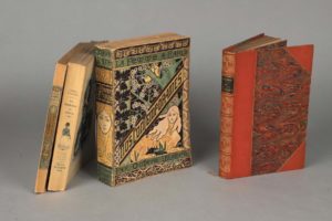 illustrée. Un des 110 exemplaires sur japon (n° CVI) comprenant une suite des planches en noir sur japon avec remarques. Provenance : Charles N. Lawrence (ex-libris gravé). On joint, du même : La Française du siècle. Modes, moeurs, usages. Illustrations à l'aquarelle de Albert Lynch, gravées à l'eau-forte en couleurs par Eugène Gaujean. Paris, Quantin, 1886. Grand in-8, broché (petite annot. à l'encre sur la garde inf.) Provenance : Louis Becker, Paris, XXe s. (ex-libris). On joint, du même : L'ombrelle. Le gant. Le manchon. Illustrations de Paul Avril. Paris, Quantin, 1883. Grand in-8, broché (petites rouss. aux gardes et faux-titre). On joint, du même : La Gazette de Cythère. Paris, Quantin, 1881. In-4, demi-maroquin vieux-rose à coins, [Fonteney] (qq. bruniss., transfert du front. sur le titre). Provenance : Octave Borelli, juriste, Marseille 1849 - Paris 1911 (ex-libris armorié). Soit 4 vol.