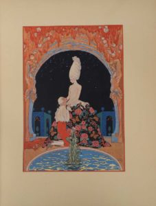 de George Barbier, dont le titre décoré et 20 planches, coloriées au pochoir. La couverture comporte en outre deux compositions. Tiré à 1200 exemplaires : un des 800 sur vélin pur fil de Rives contenant l'état définitif des illustrations.