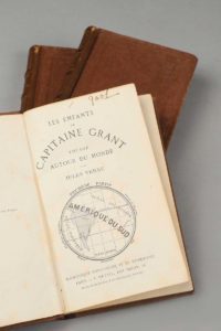 coiffes et coins, plats très lég. défraîchis ; rouss. ordinaires plutôt modérées, tache dans les marges int. de 5 f. du t.3). Édition originale en librairie de ce roman d'aventures publié antérieurement en feuilleton dans le « Magasin d'éducation et de récréation ». Elle paraît dans la collection « Bibliothèque d'Education et de Récréation », précédant de peu l'édition grand in-8 illustrée par Riou. Chaque page de titre est illustrée d'une gravure sur bois particulière, montrant dans un médaillon la carte de la partie du monde où se déroule l'action : 1re partie. L'Amérique du Sud ; 2e partie. L'Australie ; 3e partie. Océan pacifique. Mention de Troisième édition au tome 3. Catalogue de l'éditeur (4 pages, non daté) à la fin du tome 2. Numérotation manuscrite à l'encre dans les marges des gardes, de 2 faux-titres, de 2 titres, 2 premières pages de texte.