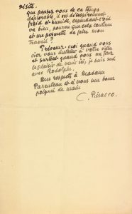 PISSARRO Camille. Lettre autographe signée. C. Pissarro (au Dr Parenteau). Dieppe, Hotel du Commerce, 22 juillet 1902 ; 2 pages gr. in-8.