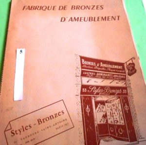 ALBUM de BRONZES d’AMEUBLEMENT de la Maison « STYLES – BRONZES », 33 Faubourg Saint-Antoine à Paris. In-folio de 42 planches, présentant des centaines d’articles, publications vers1950/60.Joignons un catalogue illustré de BEQUILLES,...