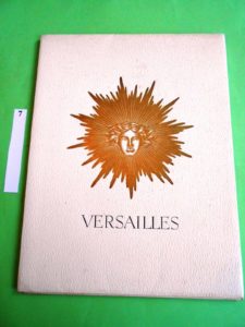 LIBRAIRES de France sur les presses de Draeger le 31 mai 1953, au profit de la Sauvegarde du Château de Versailles. Couverture cartonnée, illustrée d’un soleil d’or. Edition numérotée.
