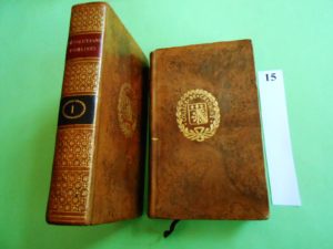 RELIURES ARMORIEES – HISTOIRE des REVOLUTIONS DE LA REPUBLIQUE ROMAINE. Paris 1810, 2 volumes in-12, reliés pleine basane, dos et plats ornés.