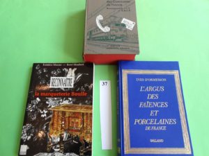 DOCUMENTS pour COLLECTIONNEURS – LOT de 3 volumes : ARGUS des FAIENCES et PORCELAINE de France. 1977, par Ide d’ORMESSON, bien illustré et relié - Comment reconnaître la MARQUETERIE BOULLE. 1990 - DICTIONNAIRE des COMMUNES de FRANCE.1959.