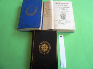 RELIURES de LA PROVIDENCE d’AMIENS – CONTES et NOUVELLES par de MARGERIE.1865 – COLLEGES de la Compagnie de JESUS en France de 1850 à 1880. Genève 1882. Lot de 3 volumes reliés, prix aux bons élèves de La Providence.