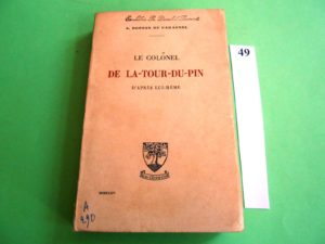 (ARRANCY en Laonnois) – LE COLONEL de LA-TOUR-DU-PIN par E. Bossan de Garagnol. Paris 1934, in-12 broché, 340 pages. Ex-libris.