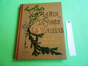 Caroline LIAIS – LA MER, LA FORET, LA MONTAGNE. Compositions de Louise ABBEMA. Paris sd (vers 1900), in-4 reliure illustrée cartonnée, 100 pages. Exemplaire très frais. Ex-libris
