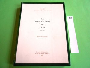 CREIL – LA MANUFACTURE de CREIL 1797-1895 par Maddy ARIES Conservateur au Musée d’ILE de FRANCE. Paris 1974, in-4 broché 131 pages. Planches, hors texte. Parfait état.