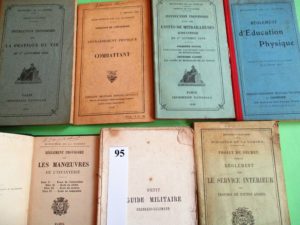 MILITARIA – REGLEMENT d’EDUCATION PHYSIQUE. 1910 – GUIDE militaire Français-Allemand. 1880 – PRATIQUE du TIR. 1920 – ENTRAINEMENT du COMBATTANT. 1918 – UNITES de MITRAILLEUSES d’INFANTERIE. 1920 – REGLEMENT du SERVICE INTERIEUR....