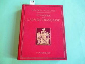 MILITARIA – HISTOIRE DE L’ARMEE FRANCAISE par le Général WEYGAND. Paris 1938, in-4, 383 pages, relié pleine toile rouge éditeur. Nombreuses illustrations. Exemplaire très frais.
