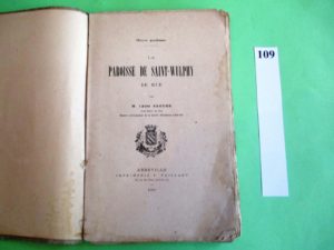 RUE – LA PAROISSE de SAINT-WULPHY. Abbé Saguez, 1908, 102 pages, planches, couverture muette et mouillures claires.