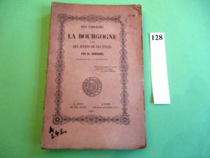 NUMISMATIQUE - DES LIBERTES de LA BOURGOGNE d'après les JETONS de ses ETATS par CL. Rossignol. Autun 1851, in-8 débroché, 304 pages, nombreuses gravures.