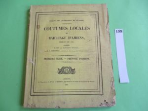 AMIENS - COUTUMES LOCALES du BAILLIAGE d'AMIENS rédigées en 1507, publiées d'après les manuscrits originaux par M. A. Bouthors, Greffier en Chef de la Cour d'Amiens. PREMIERE PARTIE CONCERNANT la PREVOTE d'AMIENS - AMIENS 1842, in-4 broché, 160...