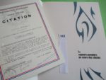 ABBEVILLE. LES SAPEURS POMPIERS AU COURS DES SIECLES. Paris, grand in-4, de 400 pages, nombreuses illustrations, relié plein cuir rouge, sous étui. Contient, hors texte, la CITATION des POMPIERS de la COMPAGNIE d'ABBEVILLE Morts en 1940 en...