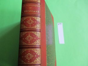 CHRONIQUES de FROISSART (natif de Valenciennes) par Mme DE WITT, née GUIZOT. Paris 1881, Grand in-4 de 840 pages, planches couleurs, relié demi chagrin rouge à coins, tête dorée, dos à nerfs richement orné. Bel exemplaire.
