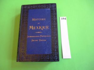 HISTOIRE du Mexique. Indépendance-République-Second Empire JUAREZ et MAXIMILIEN CORRESPONDANCES INEDITES. Paris 1868, in-8, 455 pages relié pleine percaline bleue. Ex-libris Comtesse de Salis.