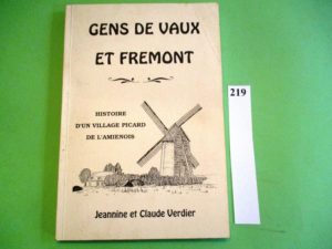 PICARDIE – GENS de VAUX et FREMONT un village Picard de l’Amiénois Par Jeannine et Claude Verdier. 1992, grand in-8 broché, 214 pages.