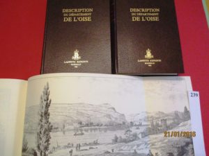 OISE – DESCRIPTION du DEPARTEMENT de l’OISE par Jacques CAMBRY. Réimpression de Jeanne Laffite 1982, 2 volumes de texte et un recueil de planches reliés. Parfait état.