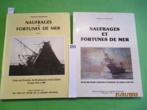 COTES PICARDES – NAUFRAGES et FORTUNES de MER sur les Côtes de Picardie, du Boulonnais et du Calaisis des ORIGINES à 1987 par Christian Gonsseaume. Etaples 1982 – 1984, 2 volumes in-4, cartonnés, illustrés de photos et croquis.