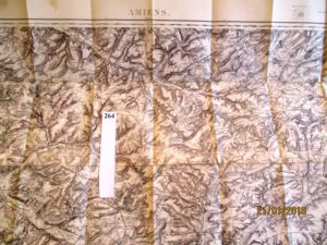 AMIENS et sa région – CARTE ANGLAISE DEPLIANTE 1/80.000 montée sur TOILE couvrant la région située entre Amiens et Doullens et, Airaines et Albert, (vers 1912). Bon état.