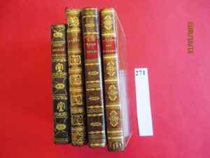 RELIURES – LOT de 4 volumes EDUCATIFS 1808 à 1835 – Bien reliés. Morale – Religion – Latin – Contes. Ex-libris Danzel d’Aumont.