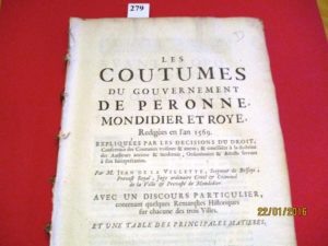 remarques historiques pour chacune de ces trois villes. Extrait du COUTUMIER de PICARDIE, de 1726 in-folio de 274, pages, broché.