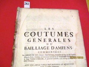 AMIENS –( COUTUMES GENERALES du BAILLIAGE d’AMIENS commentées par ADRIAN DE HEU, Ecuyer Seigneur de CONTY, Conseiller du ROY, Lieutenant Général de PONTHIEU et d’ABBEVILLE. Tome premier du COUTUMIER de PICARDIE, de 1726, in-folio...
