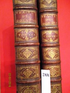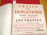 AMIENS – SENLIS – TRAITE des DONATIONS entre-vifs et testamentaires par Maître Jean-Marie RICARD avec LA COUTUME d’AMIENS COMMENTEE et la COUTUME du BAILLIAGE de SENLIS. Paris chez Michel-Estienne-David 1734, 2 forts volumes in-folio, reliés...