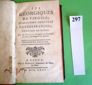 LES GEORGIQUES de VIRGILE enrichies de notes par Delille. Liège1771, in-12, relié pleine basane moucheté, dos à nerfs orné.