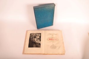 MUSSET Alfred de Rolla Un volume in-folio Textes et illustrations gravés à l’eau forte par Léon Courbouleix, 350 exemplaires, n°37, signature de Courbouleix au crayon Feuilles légèrement gondolées non paginées avec chemise et étui