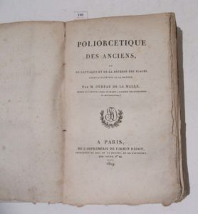 DUREAU DE LA MALLE (Adolphe-Julien-César-Auguste). — Poliorcétique des Anciens ou de l'attaque et de la défense des places avant l'invention de la poudre. — À Paris, Firmin Didot, 1819, in-8, notes, table analytique, broché.
