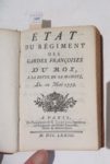 ETAT du régiment des Gardes Françaises du Roi à la revue faite par ordre du Roi par M. le Maréchal de Biron. — Le 10 mai 1773. — Paris, Lamesle, 1773, in-16, basane brune, dos lisse fleurdelysé (reliure de l'époque). — Infime trou de ver...