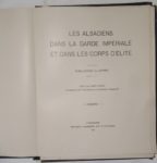GANIER (Henri). — Les Alsaciens dans la Garde Impériale et dans les corps d'élite, illustré de planches en couleurs par Tanconville et Maurice Toussaint. — Strasbourg, Fischbach, 1914, 2 vol. in-4, en feuilles sous emboîtage de l'éditeur,...