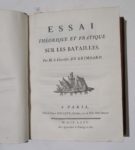 GRIMOARD (Philippe-Henri de). — Essai théorique et pratique sur les batailles. — À Paris, Chez la Vve Desaint, 1775, in-4, 36 pl. dépl., veau fauve marbré, dos orné à nerfs, fleurons dorés, pièce de titre, tranches rouges (rel. de l'époque).
