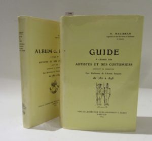 MALIBRAN (H.). — Guide à l'usage des artistes et des costumiers contenant la description des uniformes de l'armée française de 1780 à 1848. — Suivi de : – Album du guide (...). Krefeld, J. Olmes, 1972, 2 vol. in-8, bradel toile rouge sous...