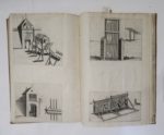 Recueil de plusieurs desseings de fortifications et de machines, tant pour tracer toutes sortes de forteresses, avec leurs parties tant extérieures qu'intérieures : Ensemble la façon de les attaquer & deffendre, comme aussi de quelques machines servant à icelles. Par le S. B., Ingénieur ordinaire du Roy. Paris, Melchior Tavernier, 1631, [2] ff. n. ch. (titre, table), 4 grandes pl. à double page (chiifrées 1-4) et 15 fig. sur 8 pl.