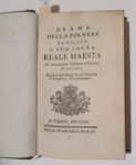 PAPACINO D'ANTONI (Alessandro Vittorio). — Esame della polvere dedicato a Sua Sacra Reale Maestà. — Turin, Stamperia Reale, 1765, in-8, [4] ff. n. ch. (titre, dédicace), avec 9 pl. dépliantes, basane verte, dos lisse orné, encadrement de...