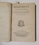 REGLEMENT provisoire, concernant le service intérieur, la police et la discipline des troupes d'infanterie. — Du premier juillet 1788. — Montauban, Teulières, 1789, in-8, 6 pl. dépl., demi-basane fauve, dos lisse orné (reliure de l'époque).