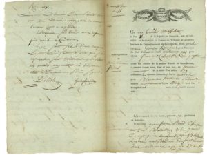 "(…) Savez vous pourquoy vous avez été arretté ? R. : Oui. C'est parcequ'on prétend que nous avons injurié et maltraité une femme le 30 prairial dernier, moi et deux de mes camarades (…) le fait est que nous rencontrâmes une femme qui nous demanda la route de St Brieuc à quoy nous répondimes qu'elle ne devoit pas être embarassée (…)." etc, etc.