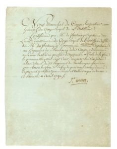 SAINT-MARS (François de Fortmanoir de). — P.S.. — Paris, 11 avril, 1791, in-4, 1 pp.