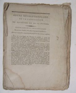 C'est à la hâte que la Convention avait organisé ces cours pratiques afin de former des dizaines de citoyens venus de la France entière aux procédés permettant de fabriquer la poudre de canon : c'est Berthollet qui s'occupa de la partie concernant la récolte du salpêtre, Fourcroy et Guyton de Morveau expliquant la genèse de la poudre.
