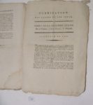 Il s'agit de l'édition originale, fort peu commune, des cahiers donnant après chaque séance le résumé du cours. On voit plus ordinairement la seconde édition, intitulée Programmes des cours révolutionnaires sur la fabrication des salpêtres, des poudres et des canons : faits à Paris dans l'ampithéatre du Muséum d'histoire naturelle, et dans la salle des électeurs, maison du cidevant évêché, les 1, 11, 21 ventôse et 5 germinal, deuxième année de la république française, une et indivisible par les citoyens Guyton, Fourcroy, Dufourny, Berthollet, Carny, Pluvinet, Monge, Hassenfratz et Perrier, à l'adresse de l'Imprimerie du Comité de salut public et formant un volume en pagination continue de 84 pp.