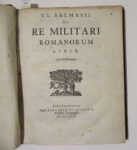 SAUMAISE (Claude). — De Re militari Romanorum liber. — Opus posthumum. — Leyde, Jean Elzévir, 1657, in-4, [6] ff. n. ch. (titre, dédicace, préface), 243 pp., avec quelques figures dans le texte, [2] ff. n. ch. de table mansucrite ajoutée,...