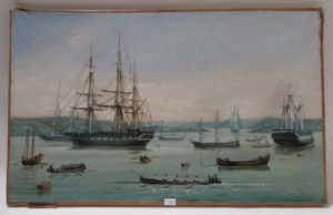 [TABLEAU] - GILBERT (Pierre-Julien). — La Marine française devant Navarin. — S.l., 1857, 60 X 37, huile sur toile.