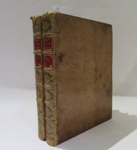 Exemplaire du lieutenant-Colonel George Lane Parker (1724-1791), avec ex-libris manuscrit au premier contreplat ; comme tous les ouvrages d'art militaire de ce général, il fut ensuite versé dans la grande bibliothèque des comtes de Macclesfield (vignettes ex-libris contrecollées sur les premières gardes).